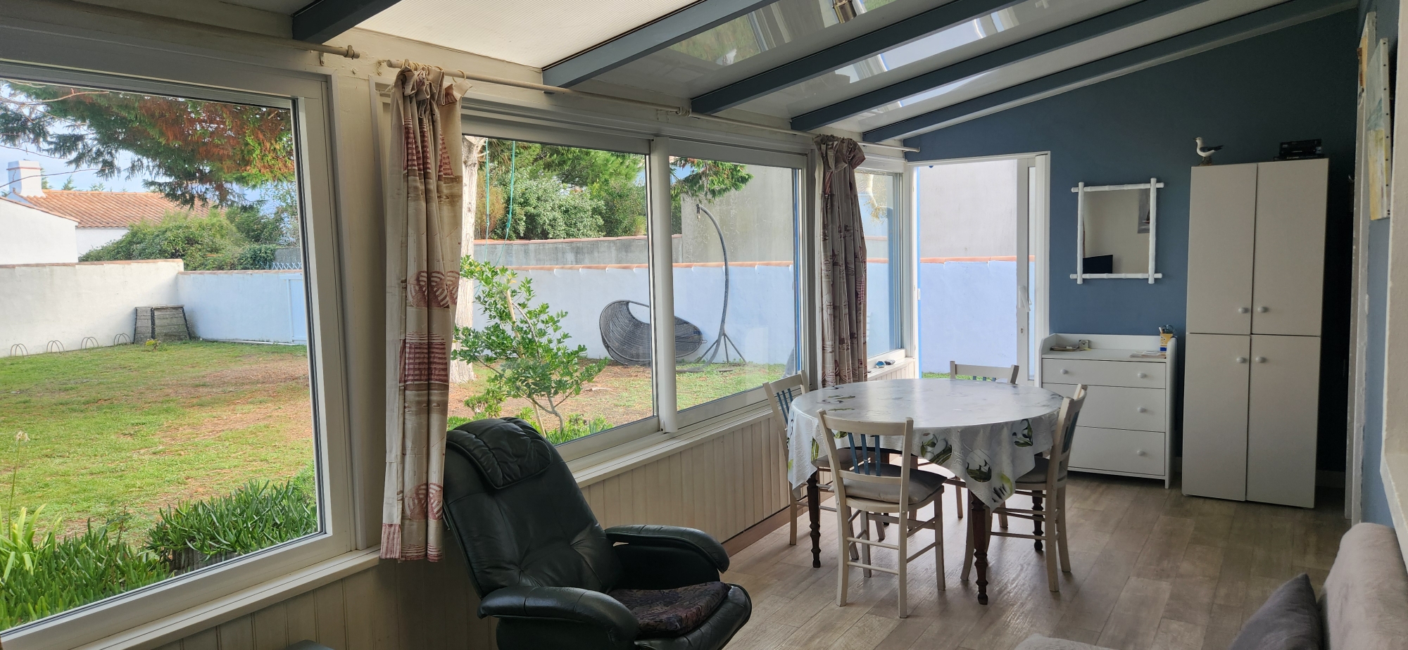 Située dans une impasse paisible, cette maison en bon état vous séduira par son emplacement idéal à proximité de la plage et du centre-ville. Elle offre une agréable pièce véranda lumineuse, une cuisine aménagée et équipée, deux chambres confortables, une salle d’eau, des WC, ainsi qu’une dépendance pratique pour le rangement ou les loisirs. À l’extérieur, vous profiterez d’un joli terrain clos de 356 m², parfait pour les moments de détente en famille ou entre amis. 📍 Un cadre de vie serein, entre mer et commodités. À visiter sans tarder !